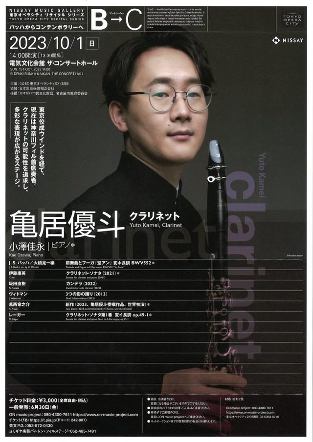 実は、恩師の息子さんが、名古屋で若手音楽家のコンサートをいろいろプロデュースされており、今回のクラリネットコンサートもそのひとつです。