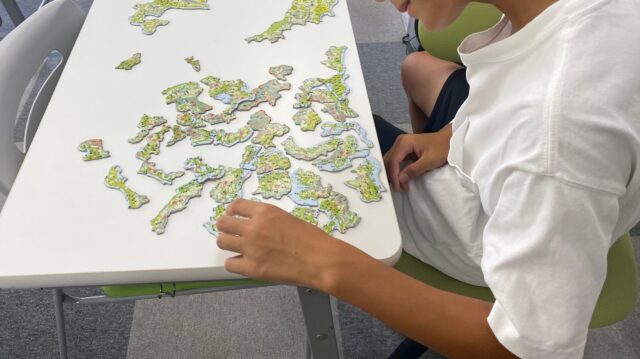 昨日ご紹介した地図パズルを机の上にそのままにしておいたら、案の定他の生徒も食いついてくれました!(笑)
