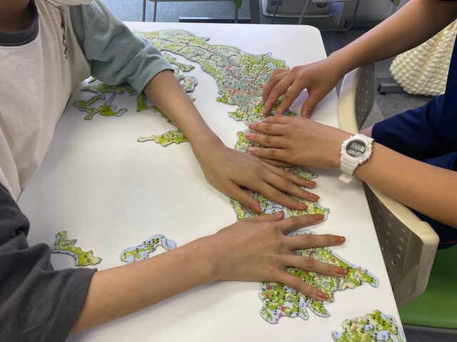 早速、他の中3や、中2生も地図パズルに挑戦! 記憶が曖昧だったところがはっきりわかりますね!