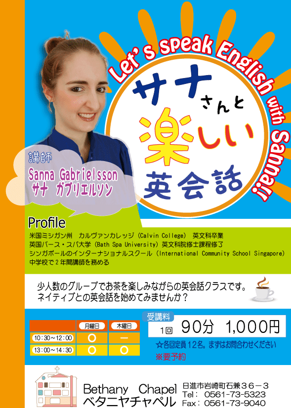 マーク先生の英会話も、教会主催だったので、同じ様に教会でやってる英会話を紹介してもらいました。