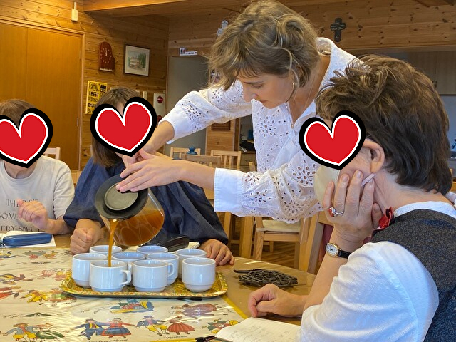 マーク先生のクラスは、真面目な教室という雰囲気でしたが、こちらの教室は、英語縛りの茶話会という感じの気軽さです。