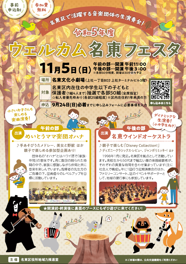 親子で楽しむ「Disney Collection!」と題して、名東区の親子の皆さんに音楽でディズニーの雰囲気を味わってもらおうと思っています。