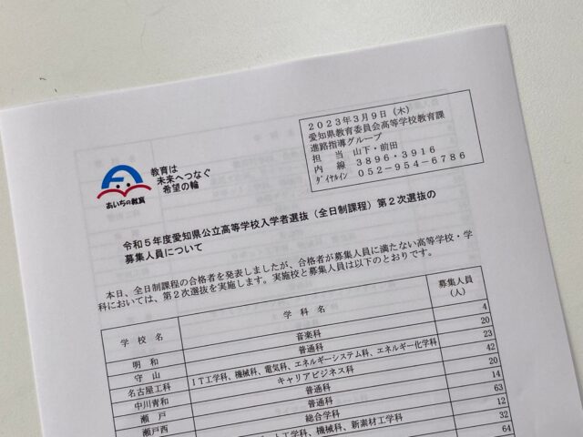 令和5年の愛知県公立高校入試での定員割れ、今年はわずかに減少!公立離れは止められないのか?