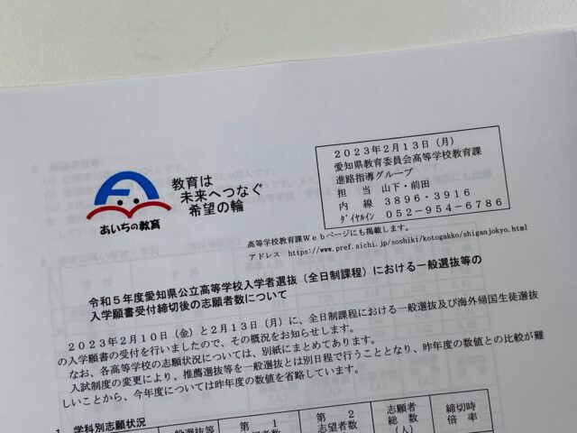 2023年 公立一般入試の志願者数、倍率が発表されました!今年は、倍率が上がった? 【令和5年度 愛知県公立高校一般入試】