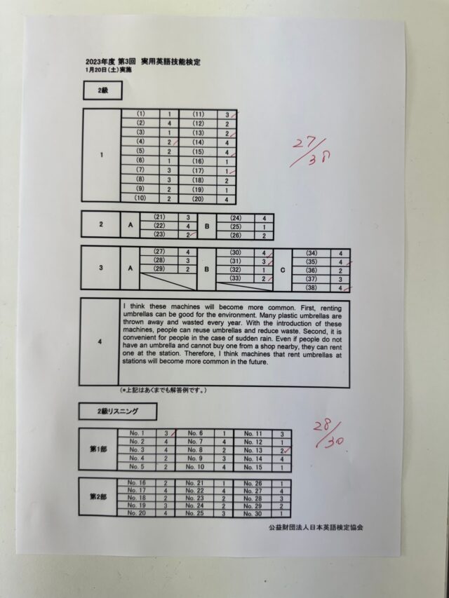 土曜日に2023年度第3回の英検を準会場として開催しました。
