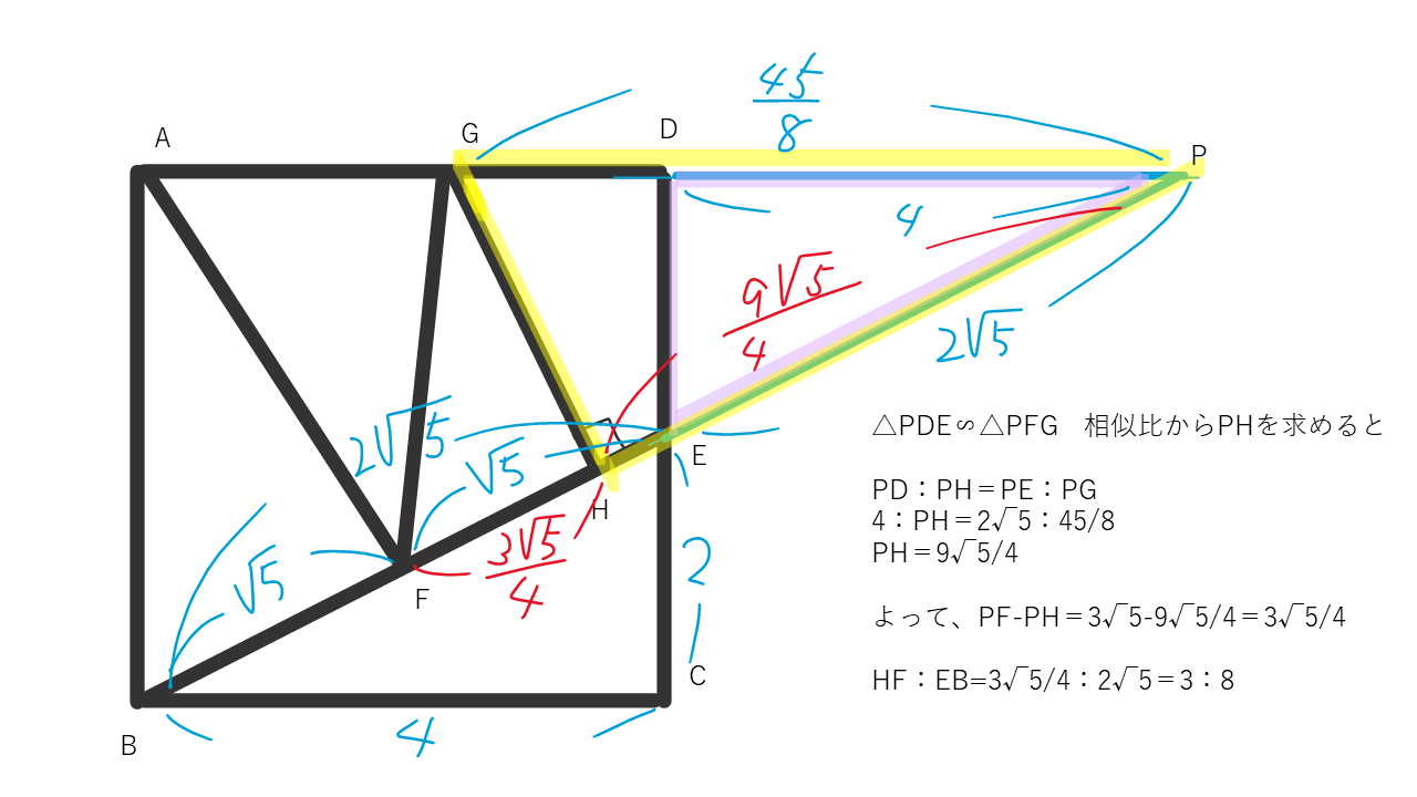 ・△PDEと△PFGの相似からPHを求めます