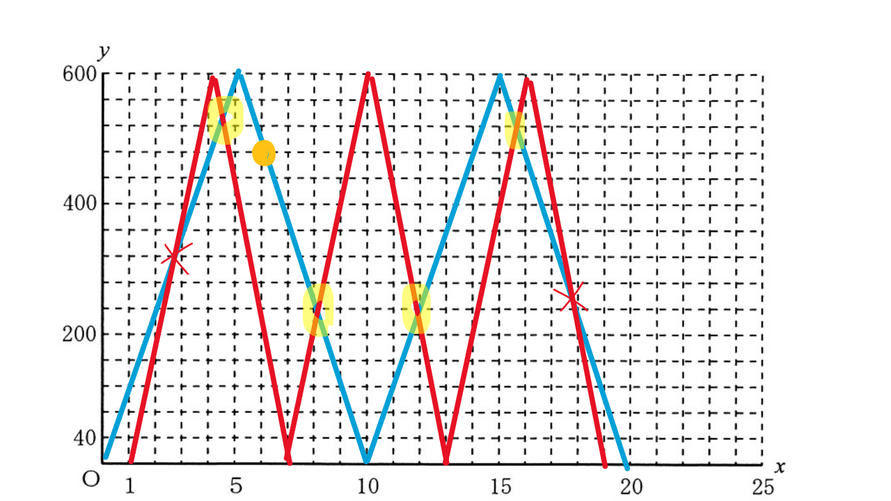 ②兄のグラフを弟のグラフに重ね、交点の数を求める。