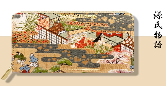 持ってるおサイフもこんな感じの源氏物語絵巻が刺繍されたおしゃれな長財布を持ってるくらいだし。