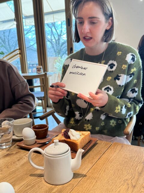 サナ先生が手にしている「Chamber musician」 は、雛飾りの「五人囃子」をについて話をしてたときに書いてくれたもの。