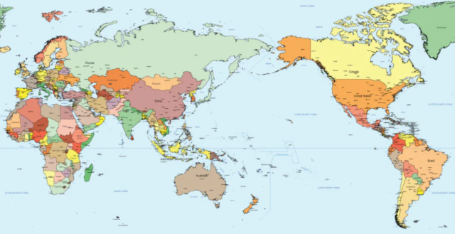 日本人はこちらの世界地図に慣れていますが、いくつか問題があります。