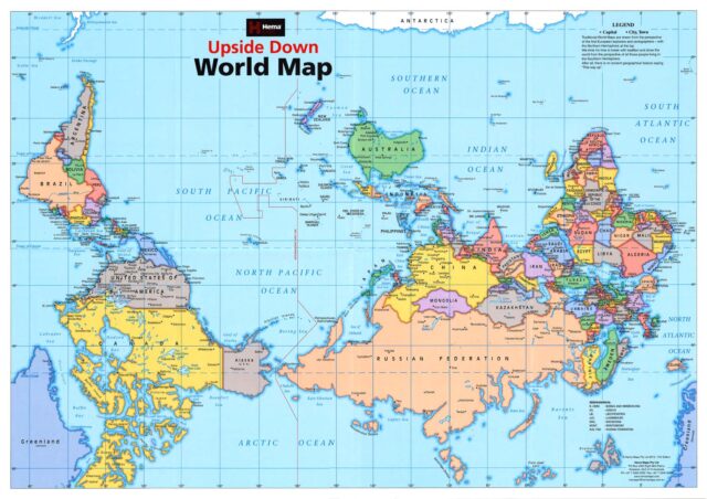 最後におまけで、いつも世界地図の下の方にかかれているオーストラリアでは、こんな地図が売られているそうです。