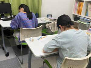 中2の生徒が、数学の確率に取り組んでいます。