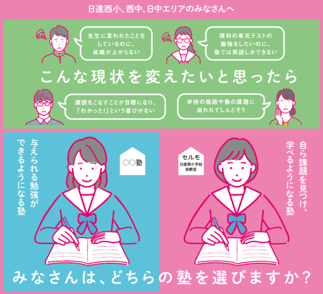 「与えられた勉強ができるようになる塾」と「自ら課題を見つけ学べるようになる塾」どちらを選びますか?