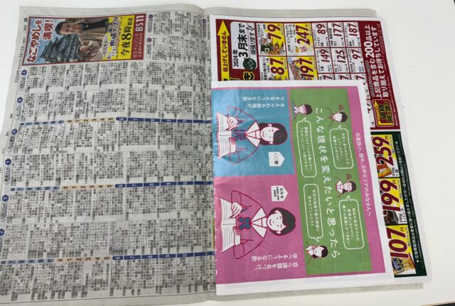 毎回、新聞販売店様のご厚意で、目立つ上の方に折り込んでもらえています。