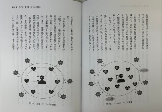 こちらのP.79~P.81でも、上記の写真のように「フィルターバブル現象」について解説がされています。