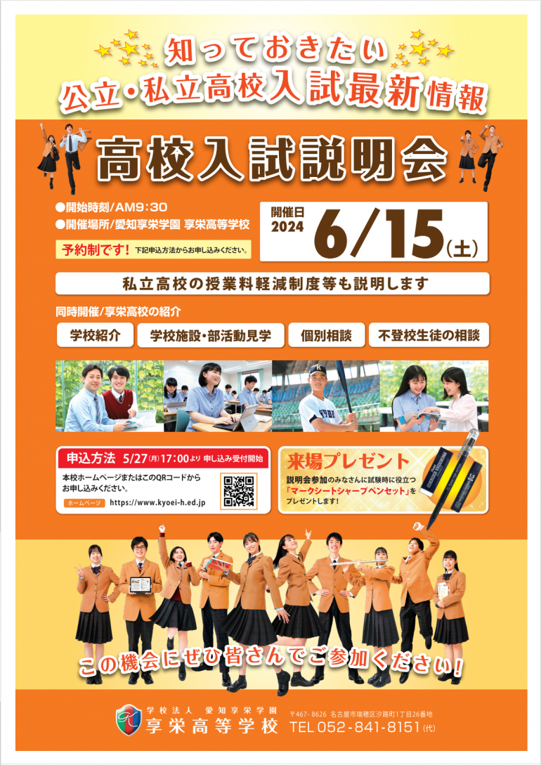 お申し込みは、5/27(月)以降、以下の享栄高校のHPで申し込みできます。