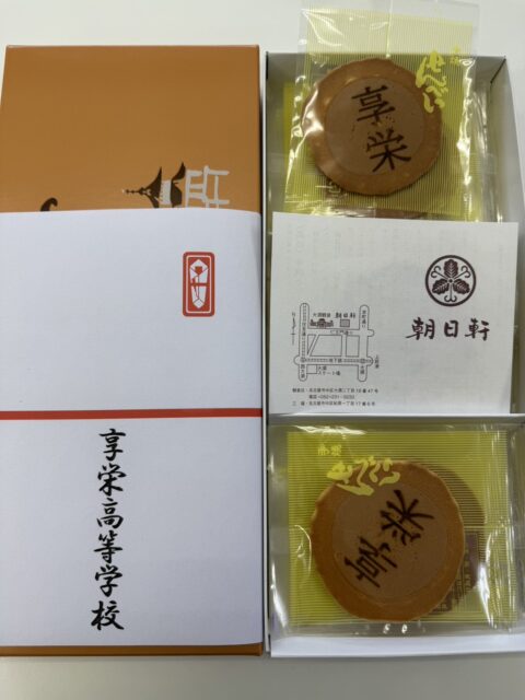 以前兄弟校の栄徳高校からも、栄徳の焼印が入ったおせんべいを頂いたことがありました。