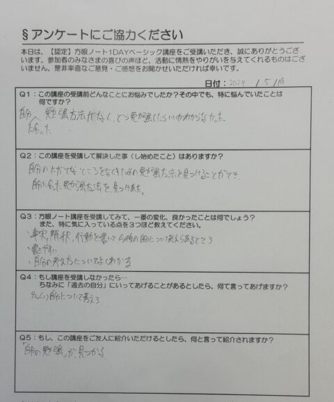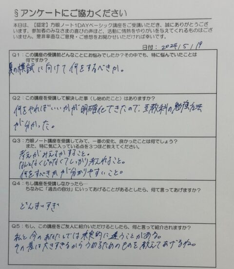A.何をやればいいかが明確化出来たので、五教科の勉強方法が分かった。