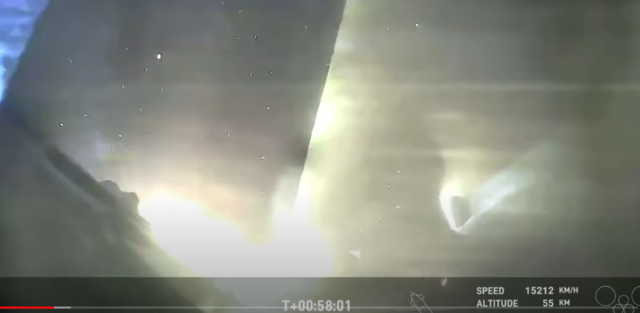 今回も、そのプラズマが綺麗に見えたのですが、そのあと、機体につけられたオンボードカメラが、機体上部のフィンが大気のプラズマの高温高圧に耐えきれず、耐熱タイルが剥がれ、根本がボロボロになっていく様子を写し続けました。