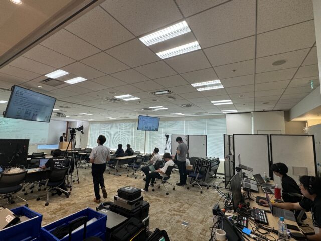 会場のセミナールーム後方は、配信機材でこんな感じです。
