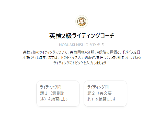 英検の学習に大活躍なChatGPT4 英検2級のライティングコーチをアップデートしました!