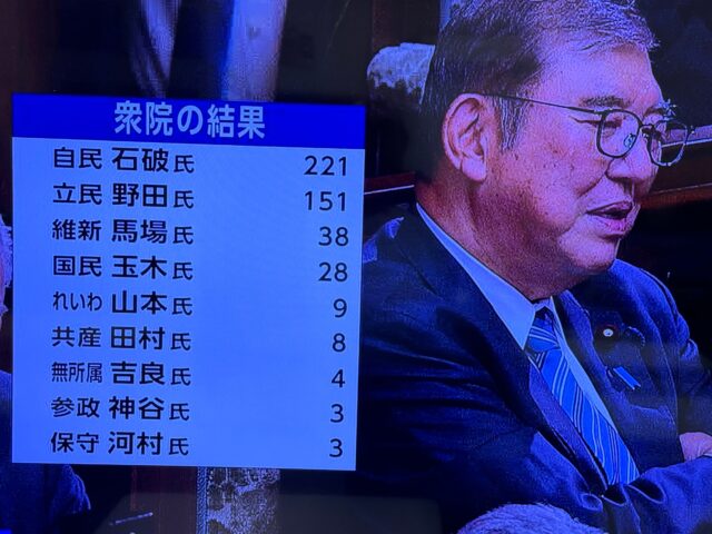 予想通り、野党の話し合いで合意が得られず、国民民主を始めほとんどの野党がそのまま自党の党首の名前を書いて投票(決選投票では無効票あつかい)したため、決選投票では、過半数に達しなくても1票でも多いほうが当選するというルールに基づき、石破さんが103代の首相に指名されました。