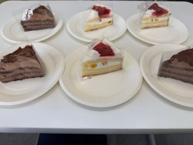15時頃に冬期講習で頑張ってくれている中学生に、サプライズでケーキをプレゼント!