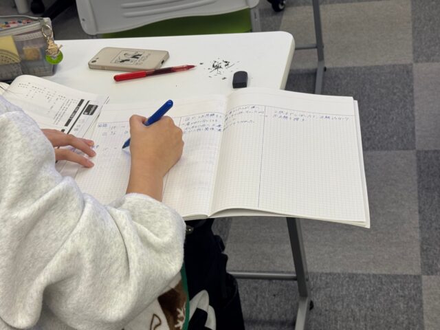 過去問を解き終わった後、今日の結果をもとに、何ができて何ができなかったのか、なぜそうなったのか、この1週間で何をすべきかなどを方眼ノートにまとめてもらいました。