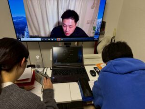 いつもはこんな感じでオンライン越しで授業を受けているので、リアルに宮本先生と合うのは初めてという生徒ばかりです。