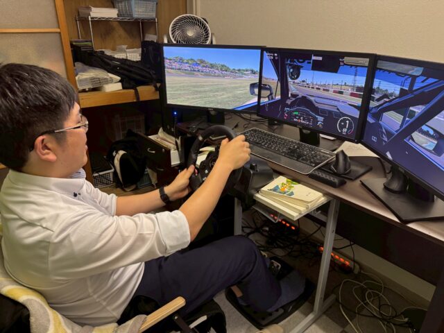 わざわざ塾にきて、生徒の相談にのってもらったお礼に、大好きなレーシングシムでサーキットを爆走w