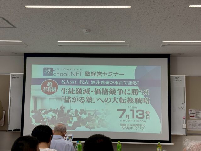 今日は、名駅で行われた塾の教材専門会社「名大SKY」主催のセミナーへ行ってきました