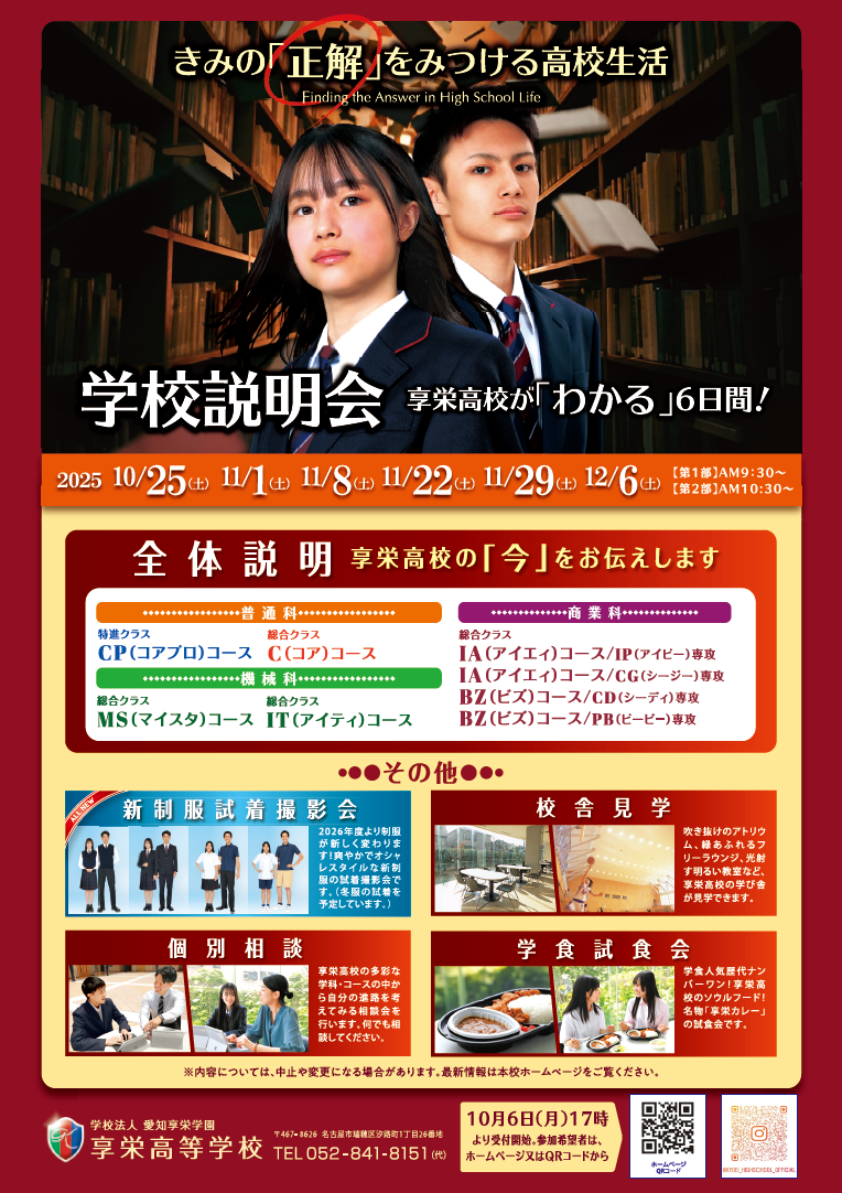 享栄高校が気になったら、10月以降の学校説明会に足を運んでみてくださいね!