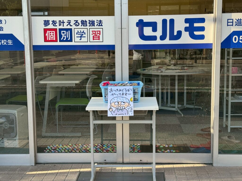 お母さんにつれられたちいさなどろぼうさんや、小学生のかわいいどろぼうさんたちが、塾の前に置いてあるお菓子を楽しそうに持っていってくれました!