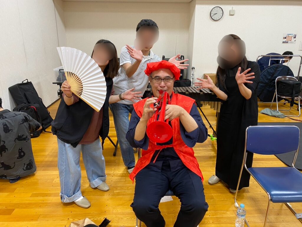 先日はトランペットパートのみんなに、赤いちゃんちゃんこを着せてもらって、お祝いに赤いトランペットまでいただきました!