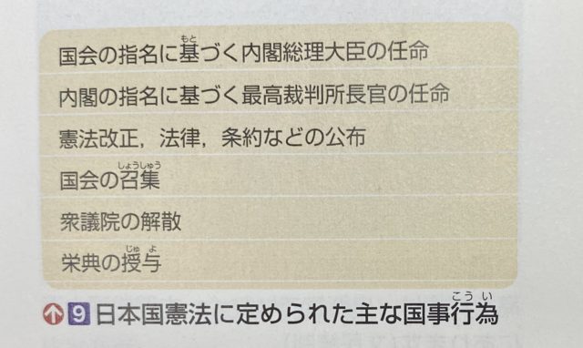 ちなみにこの、天皇が(国会の指名に基づき)内閣総理大臣を任命するのは、天皇の国事行為の一つであり、コレもよくテストに出るところですw