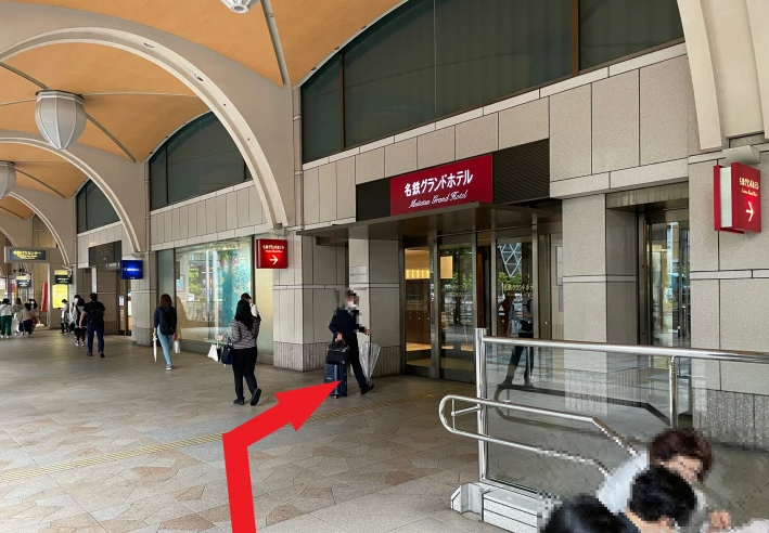 ナナちゃん人形の場所がわかれば、その手前にある名鉄グランドホテルの入り口からはいって、エレベータで9Fになります。