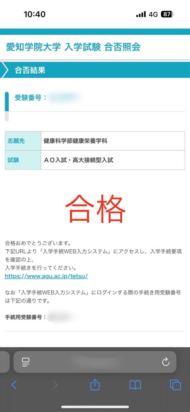 そして、11月1日の合格発表の日に、無事合格しました!とLINEで報告してくれました!