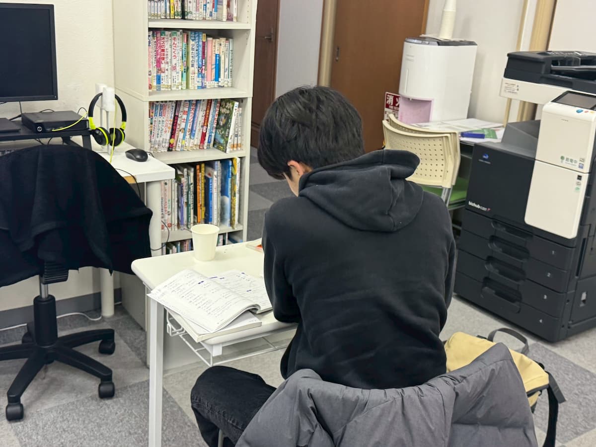 冬期講習だけでなく、年末年始の休みも自習したかったらおいでねと伝えておいたら、今日早速来て勉強してくれています。