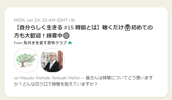 今日は月曜恒例のClubhouseのコーチング部屋でした。「時間とは」をみんなで考えました!