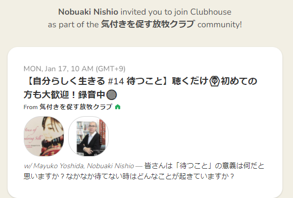 今日は月曜恒例のClubhouseのコーチング部屋でした。「待つこと」の意味をみんなで考えました!