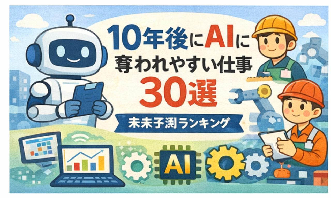 「AIに仕事を奪われる」と聞くと不安になりますが、実際に起きやすいのは “職業が消える”より“作業のやり方が変わる”という変化です。ここでは、2026→2036ごろに 業務の大部分(目安:作業時間の30〜70%以上)がAI/自動化に置き換わりやすい度合い を、仕...