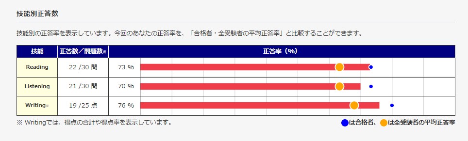 ちなみに前回の3級のライティングの合格者の平均得点率は、75%だったので、5%も上がっています!