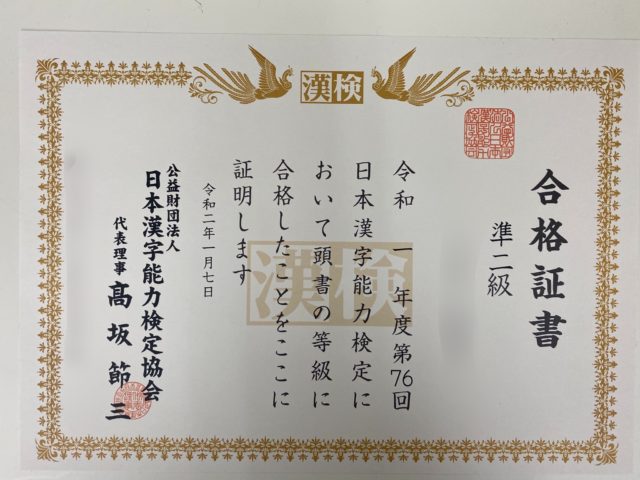 漢検受験ラッシュも、今日でひと段落、合格証書も届きました!