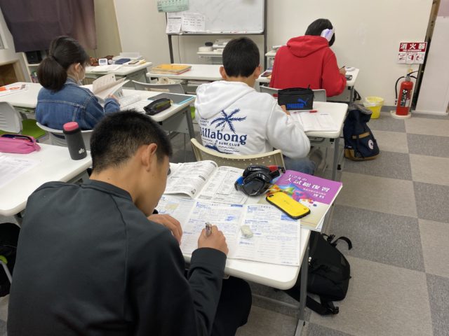 明日の模試に向け、中3生がしっかり準備をしていました。