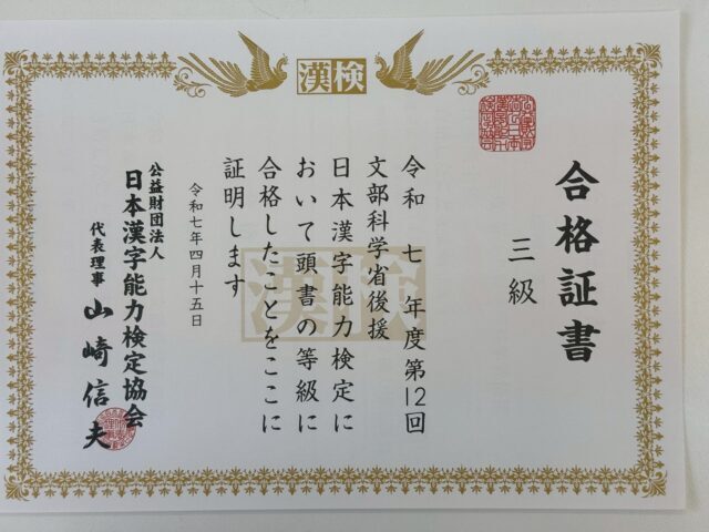 新中3年生がリベンジ受験してくれた漢検CBT3級の結果が届きました!