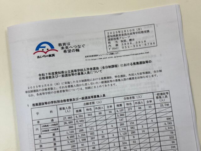 R7年 愛知県の公立高校 専門学科の推薦入試の合格者数や合格率は? 特色選抜の合格率は?