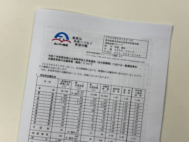 2025年 公立一般入試の志願者数、倍率が発表されました! ここ数年の倍率の推移は?【令和7年度 愛知県公立高校一般入試】