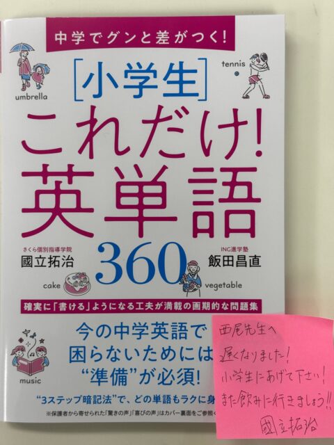 國立先生が、新刊の「中学でグンと差がつく! 小学生これだけ!英単語360」を送ってくれました!