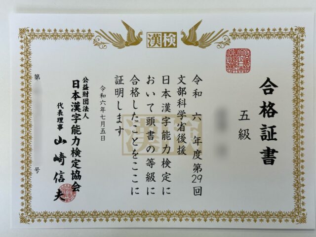 小学6年が挑戦してくれた漢検CBT5級の結果が届きました!