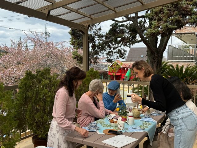 木曜は英会話の日! テラスで散りかけの桜を観ながらの優雅なティーパーティーでした。